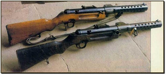 el Mp-28 Español de abajo es la variante con palanca de montar del cerrojo en forma de copa