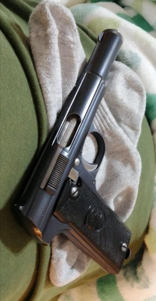 La 600 tiene marcaje P, esta es de 1945. No tiene marcajes de la Werhmatch ni de la Policía Federal Alemana de modo que deduzco que jamás salió de España. Por desgracia no tiene el característico grabado de ASTRA en la corredera, sobre el lomo del cañon al contrario su hermana pequeña. Supongo que al ser de las últimas y ya con la guerra perdida para Alemania, en fábrica se desganaron con la puntullosidad en el detalle que si tuvieron las primeras. El número de serie es 41180.