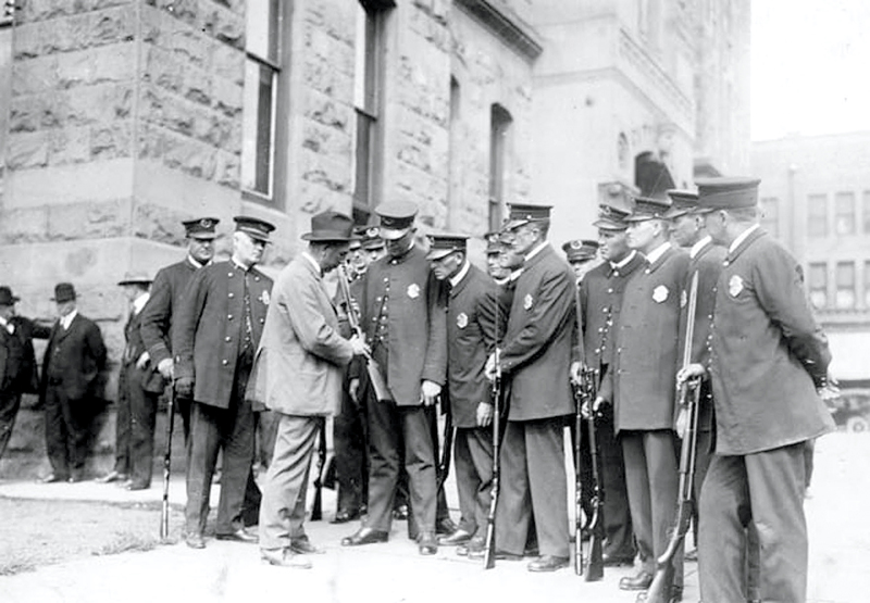 Winchester M12 en uso policial en uSA, con adaptador para bayoneta, y en uso militar en el ejercito francés.