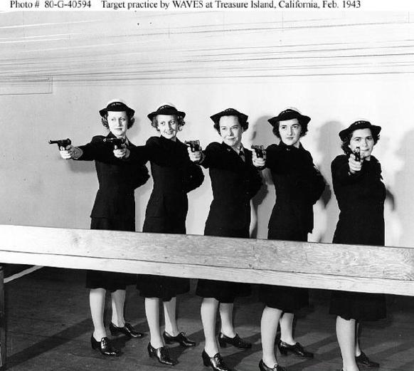 5 señoritas de la US Navy haciendo prácticas de tiro en 1943 con 5 Luger, supongo que en calibre 9 mm Parabellum.