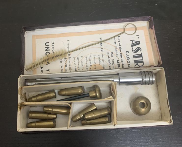 Los pistoncillos flobert se ponían en los casquillos de bronce y se alimentaba con ellos los cargadores originales, evidentemente no automatizaba. Veo también el accesorio para desencajarlos una. Es disparados. El kit completo.