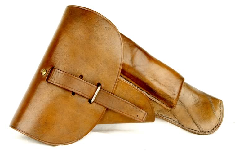 Esta en concreto parece de cuero pero en ese conflicto también se usó para esta pistola un modelo tropical en tela.