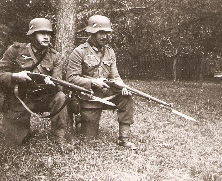 Efectivamente esa foto es de preguerra pero en mi opinión muchos cascos M16 fueron reutilizados sobre todo al principio de la guerra y también los Mannlicher en su versión larga y corta llegaron a ser usados en combate.