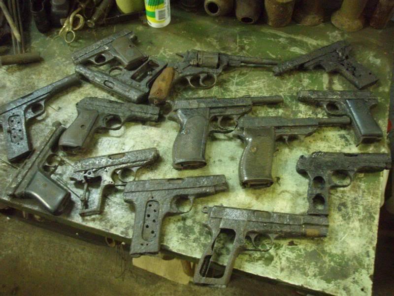 Que lástima de armas... Hay un buen pupurri, entre las P38, GP35, Mauser, Astra, FN, que lástima verlas en ese estado...