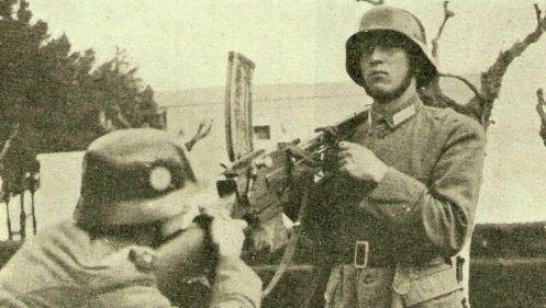 Y los del medio son Soldados paraguayos utilizando la ametralladora Madsen en la guerra Guerra del Chaco (1932-1935)