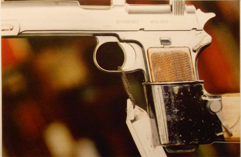 Una peculiaridad es que las 3 pistolas de la derecha parecen ir equipadas con cargadores de alta capacidad. Primera vez que veo una Steyr Hahn con culatín. Revisaré los archivos.