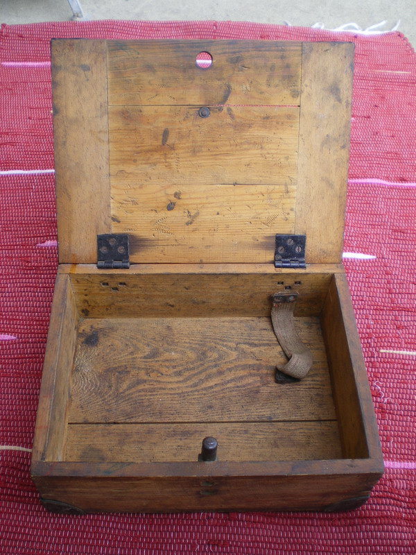 En el mismo orden de ideas y para conocer el detalle de los alemanes para embalar yproteger su material sensible, aqui tenemos otra caja de madera, esta vez para la P 08. LLamada "P 08 mit Tasche".