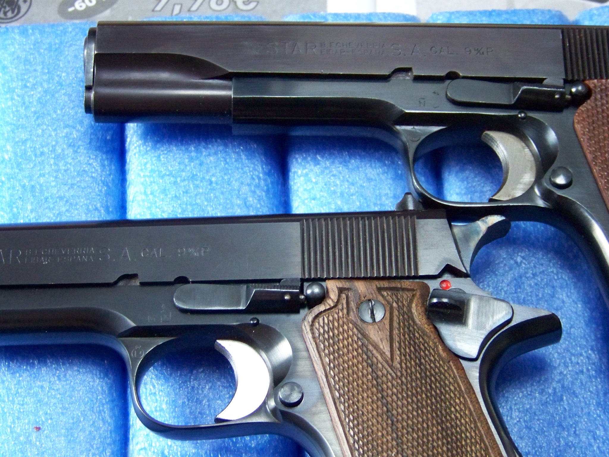 En la fábrica, estas armas eran revisadas, reparadas, y si se pensaba en mandarlas para exportación se les marcaba la leyenda "SPAIN". De las adaptadas para disparar el .38 ACP, se les marcaba esta cifra a continuación de "9 M/M", en la corredera.