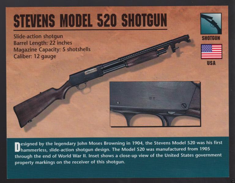 Stevens 520A, evolución de la 520, llevo a este modelo a su máxima expresión, la patente también es de Browning,es una escopeta tan moderna como las que podemos comprar hoy en día.