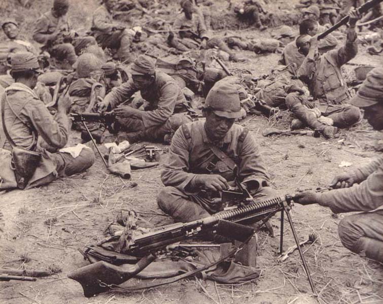 y el fusil ametrallador un Nambu Taisho 11 japones