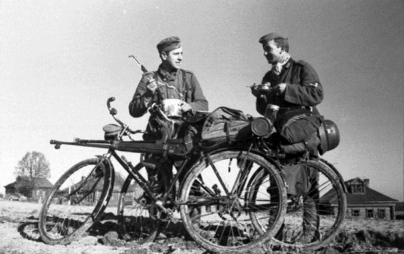 Es un Panzerbüchse 39 con el culatín plegado y vuelto del revés colgado de esa bicicleta alemana.