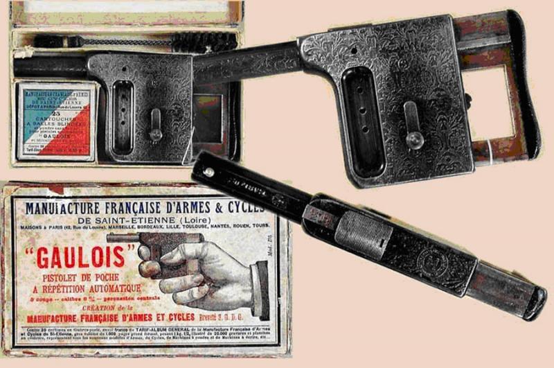 A esta también se la llamaba "Mitrailleuse de poche" (ametralladora de bolsillo). Se podían disparar 5 tiros en 2 segundos. Existió en 4 acabados distintos, incluso algunos lujosos, con incrustaciones de marfil.