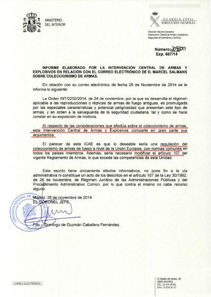 Por si lo desconoce el Sr. Salmans es el delegado de Coleccionismo de ANARMA y mandó un email el día 26 de Noviembre (no septiembre) que firmamos el y yo el 19 de Noviembre con las propuestas de ANARMA.