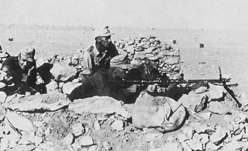 la de abajo es una Mg-15 adaptada a uso terrestre con un bipode y una culata , esta vez aparentemente son Fallschirmjager quien la manejan