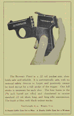 bueno,y quien no conoce esta pistola,yo tengo varias,je je.es una pistola de bolsillo de cuatro cañones patentada por oscar mossberg en estados unidos en 1906 y fabricada por shattuck arms company