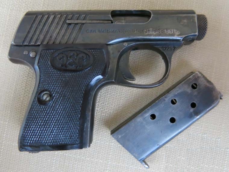 También puede ser una Walther Model 2 de segunda variante que salvo por las muescas de agarre, casi indistinguibles en la reliquia, es prácticamente igual a la Walther Model 5.