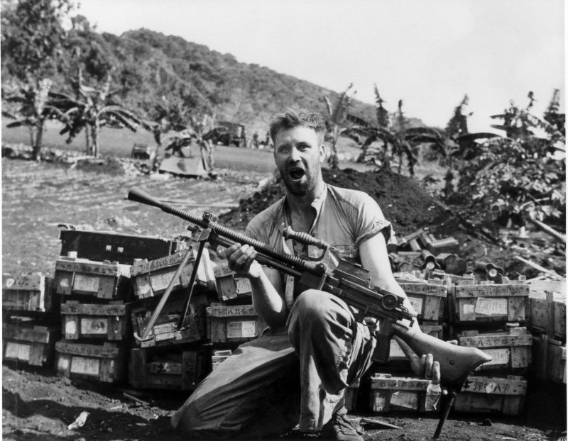 La segunda es una Lewis gun en concreto esta es una Dutch Lewis M20 en calibre 6.5x53R con un cargador de 97 disparos en manos y "espaldas" de tropas coloniales holandesas en las Antillas.
