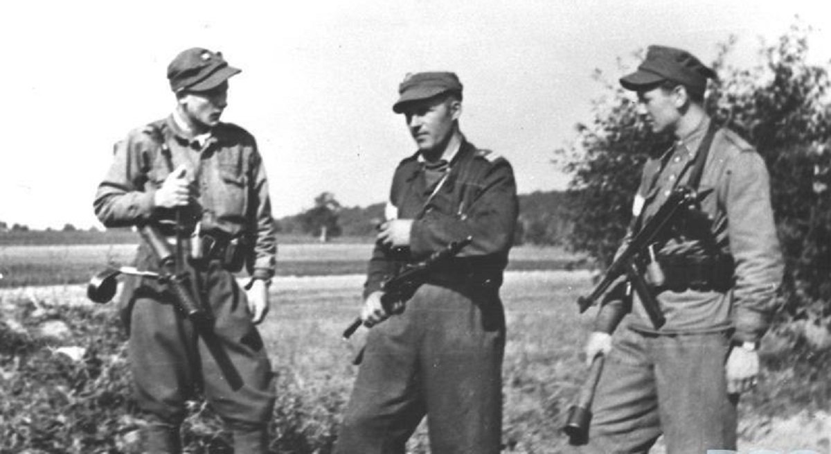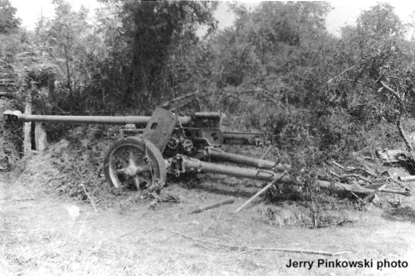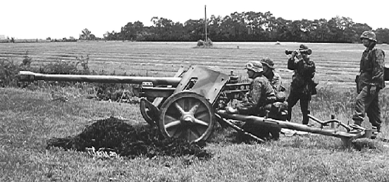 el primer cañon aparentemente es un anticarro Aleman PAK 40 de 75 mm servido por paracaidistas Alemanes ( Fallschirmjagers )