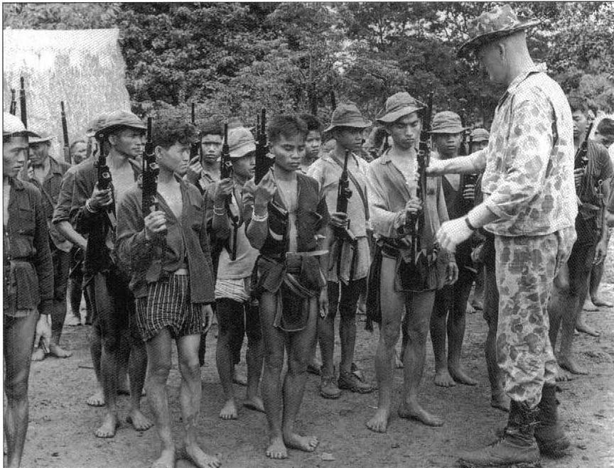 de izquierda a derecha , el soldado porta su M-16 con el AK chino que esta siendo atendido por su compañero de la derecha