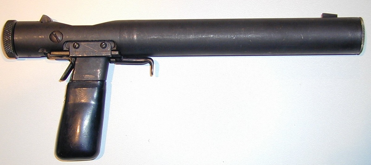 El arma de la segunda foto es un Welrod, correcto, pero ¿cómo se llama el subfusil de la primera imagen?