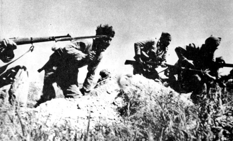 A mi también me parecen fusiles Mosin Magant 1891 en manos de Brigadistas Internacionales.