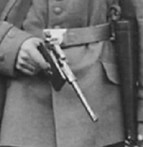 Una Steyr M1912, tambien conocida como Steyr-Hahn, ó Steyr-Hammer en el mundo anglosajón. Por el tipo de uniformes podria estar en manos alemanas.