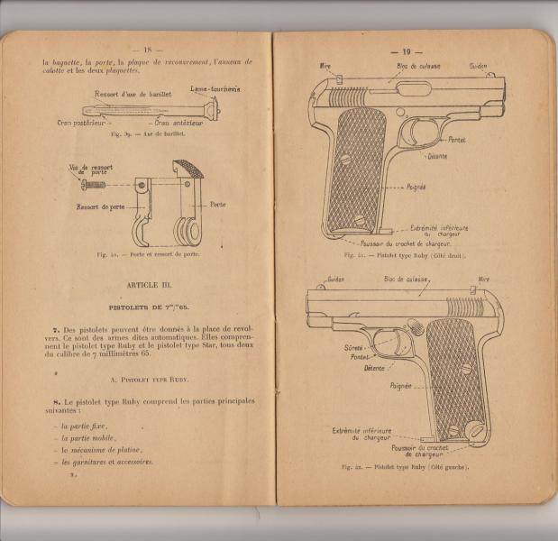 Tengo este viejo Reglamento de Artillería francés de 1930 donde se describen todas las armas portátiles de la época en ese país y en él aparece "nuestra" pistola tipo Ruby y por supuesto también viene perfectamente explicada la "Pistolet Type Star" que no es otra que este Modelo 1914 de Bonifacio Echeverría.