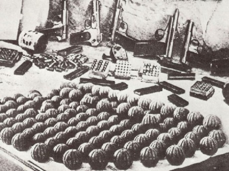 Y en primer plano un montón de bombas de mano, creo que de fabricación artesanal.