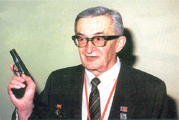 El de la imagen es Igor Stechkin (1922–2001) con una antigua pistola Stechkin TS fabricada en Tula en 1947 en calibre 7.62×25 mm Tokarev pero la pistola que le hizo famoso fue la Stechkin APS en calibre 9 mm.