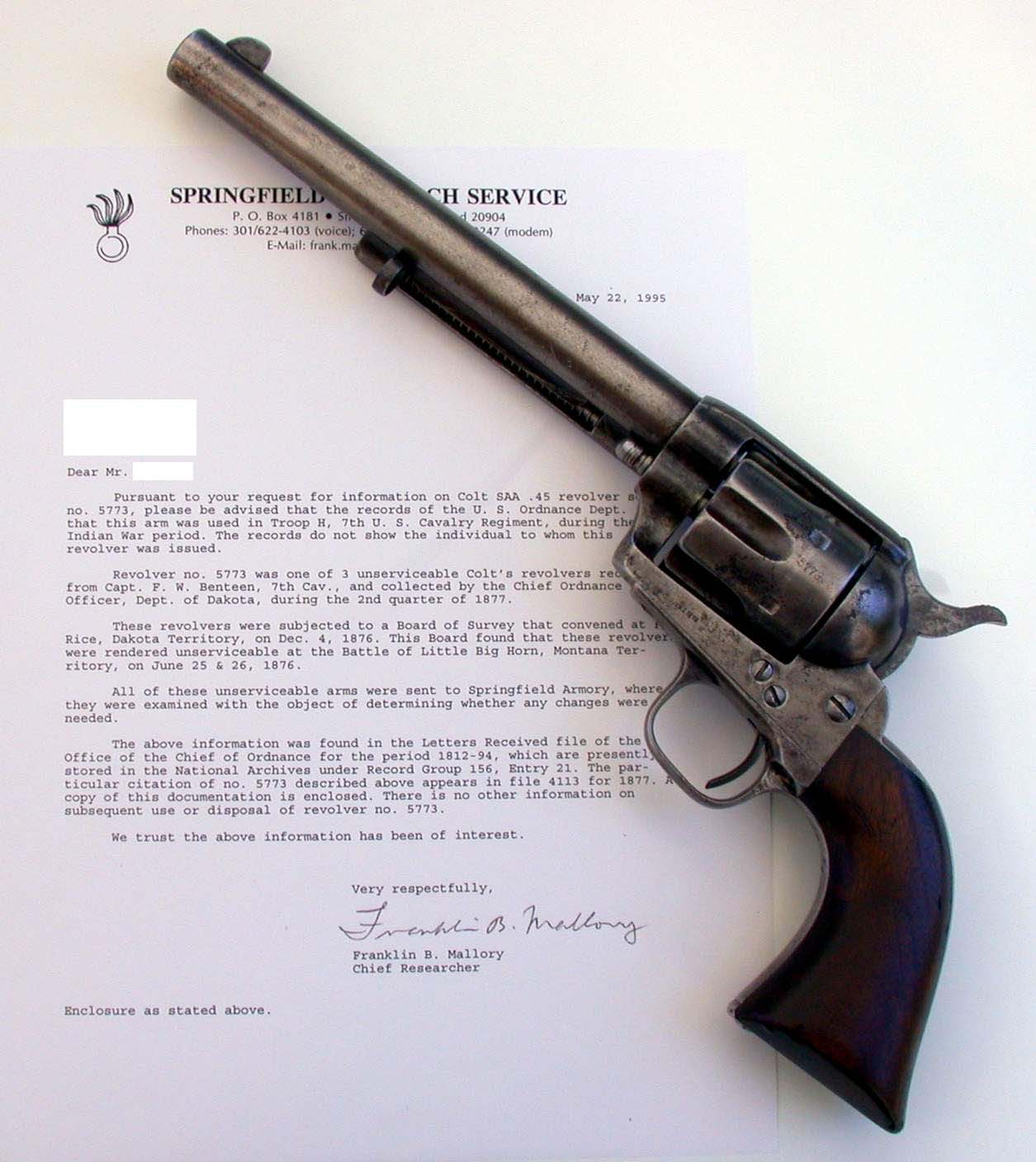Correcto este Colt Model 1860 Army que fue fabricado en 1867, usado en la batalla de Little Bighorn en 1876 y recuperado en ese mismo lugar todavía cargado en 1935.
