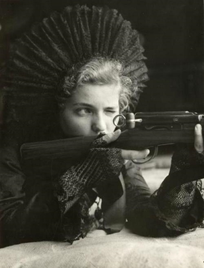 Una femina con un Smicht-Rubin suizo.