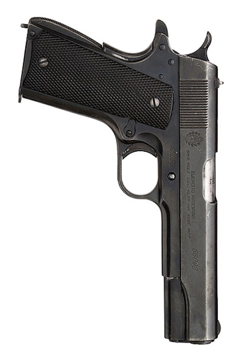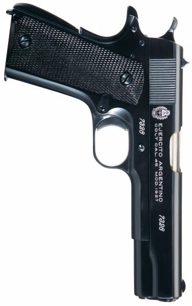 Hablaríamos en primer lugar de una de las 10.000 unidades de Colt 1911A1 originales que Argentina compró a esta fábrica en 1927 y que en este país tuvo la denominación oficial de Colt Cal. 45 Modelo 1927.