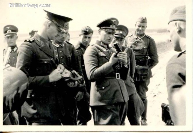 Para darle algo de verosimilitud a estas últimas posibilidades recordamos esta foto que ya salió hace tiempo en este Hilo donde podemos ver a un oficial argentino que muestra su pistola tipo 1911 a un oficial alemán durante unos ejercicios conjuntos realizados en Alemania antes de la guerra.