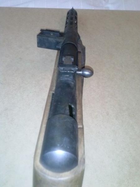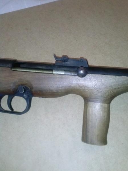 El arma tiene la palanca de montar redonda y carece de marcajes de ningún tipo excepto un número de serie de 4 cifras en el cañón ,en el disipador térmico que lo cubre y parece que en el cierre ( no mecaniza completamente)