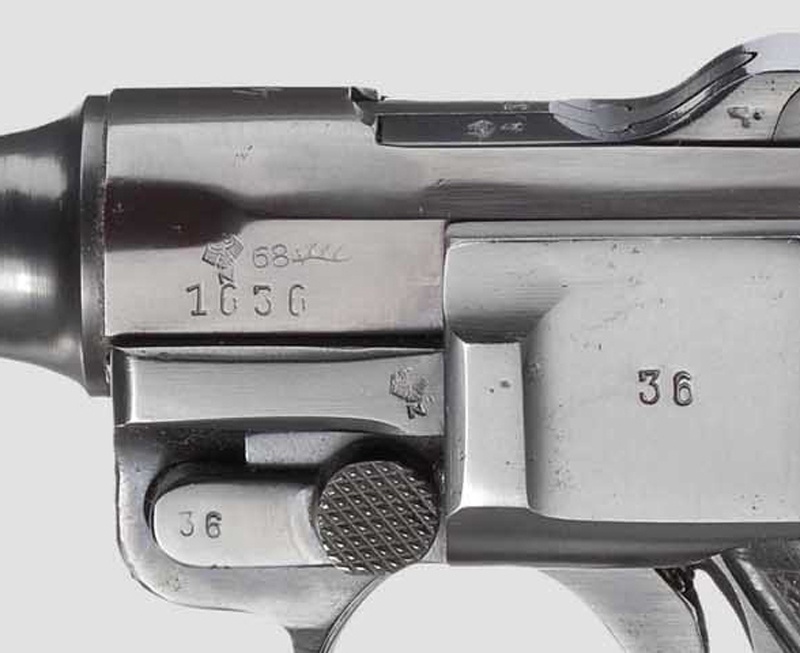 Esta pistola tiene, en la parte inferior del cañón, una marca S/42. Esta significa que el cañón es una reposición de Mauser.
