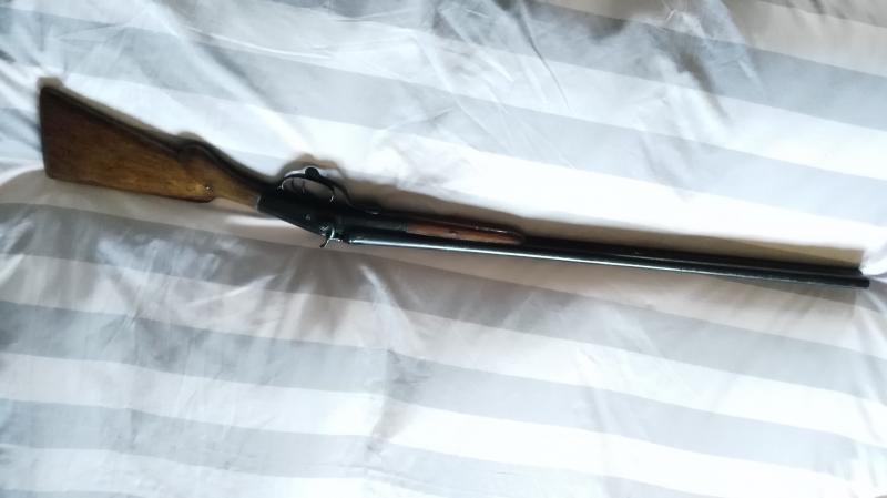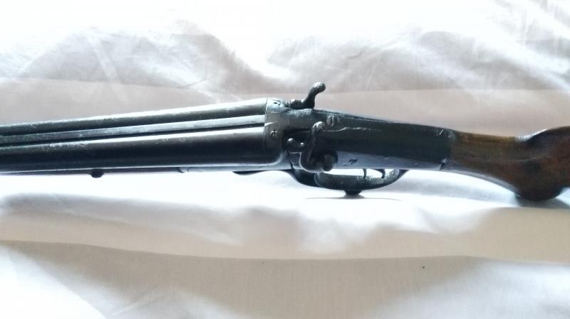 Me pasan unas fotos de una escopeta antigua, sin ningun tipo de inscripccion ni nada, que no dispara, totalmente deteriorada, (por lo q me comenta esta pintada con pintura negra, creo q se aprecia en la foto)