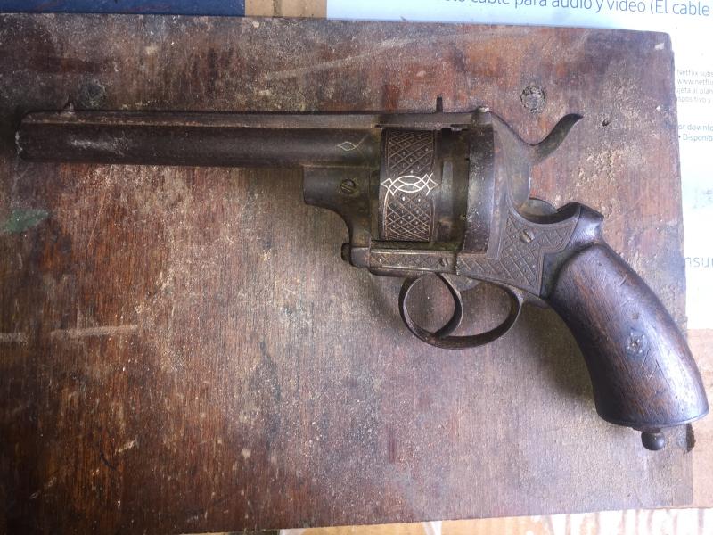 Es un revolver de tipo "Lefaucheux" o "de espiga". Fueron muy comunes en Europa a mediados/finales del Siglo XIX.