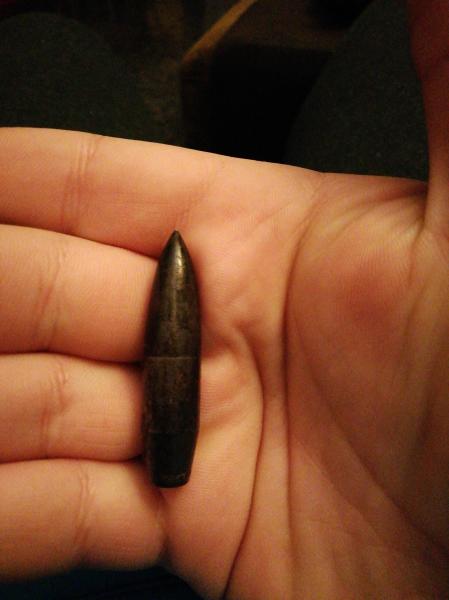 Mira el culote. Si el borde está girado hacia el interior es un proyectil, pero por el color me inclino a pensar en un núcleo perforante. Si es el caso, el culote tiene que ser plano