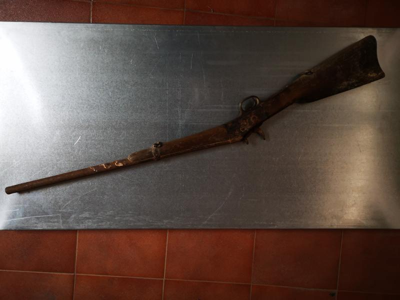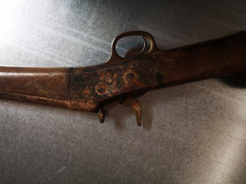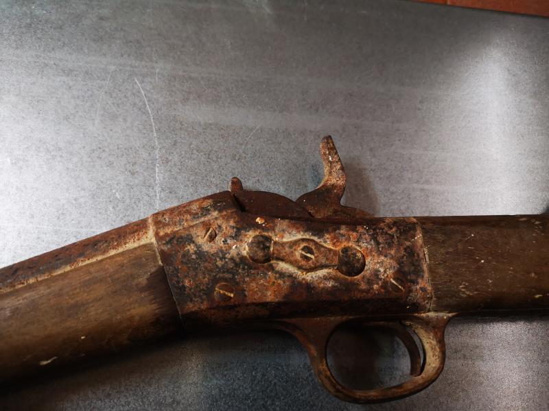 No digo que no sea un rifle, pero también había escopetas Rolling Block. Si no se ve por ninguna parte debido a su mal estado, el tamaño de la recámara puede dar pistas, la mayoría solían ser del 16.