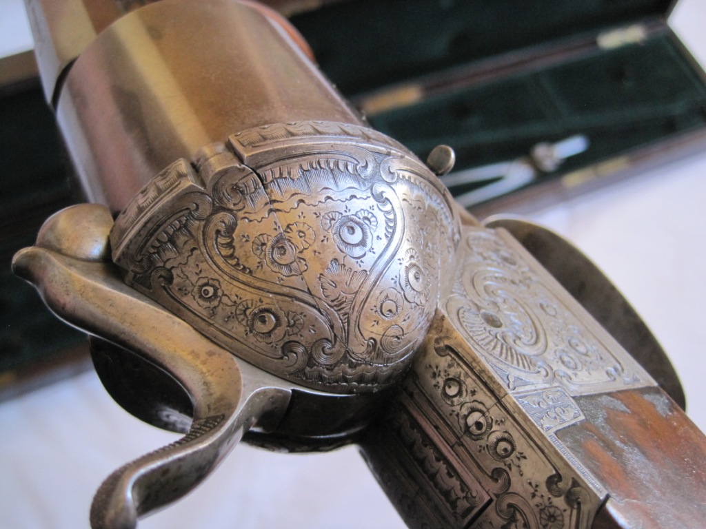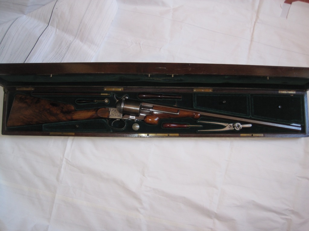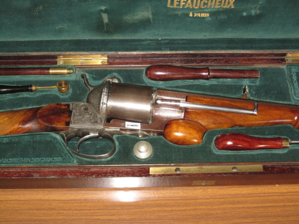 Es que no encuentro nada en armas de Lefaucheux fabricadas en Francia, que hayan usado ningun calibre de los que citas. A saber el .54 British o el .58 americano.