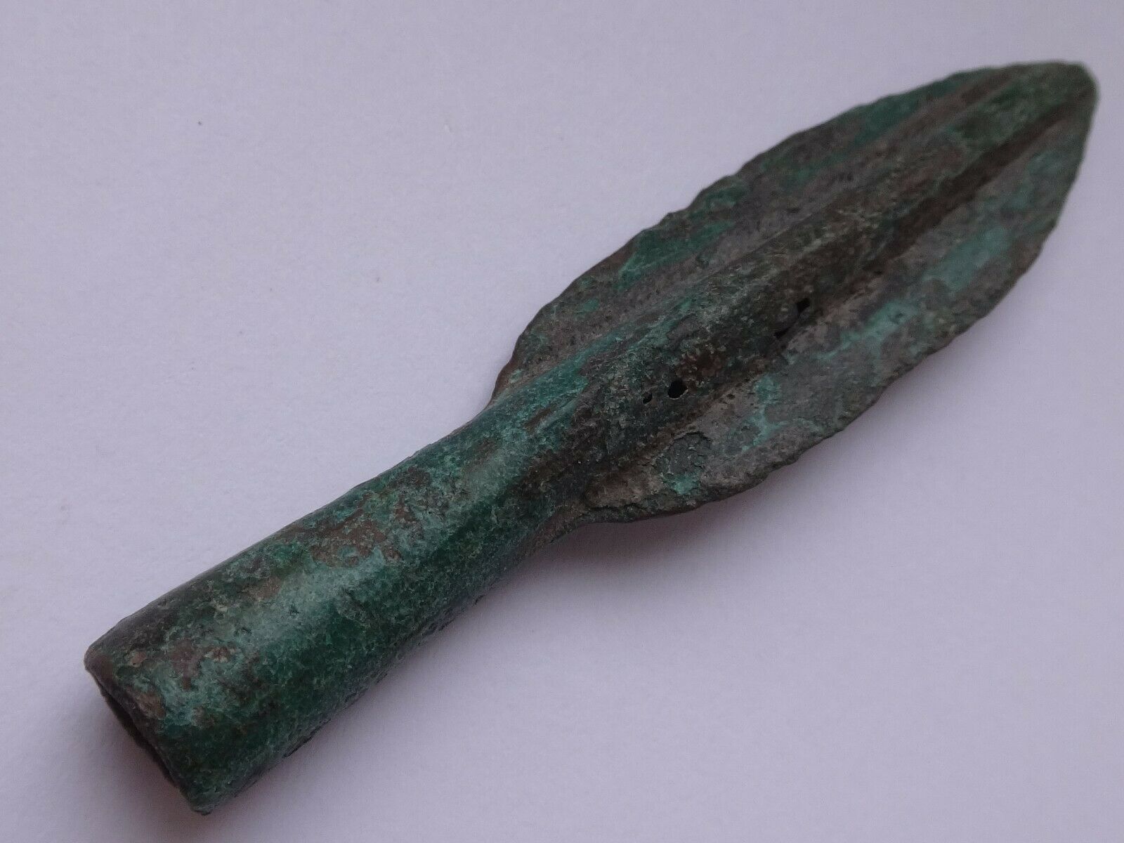 Yo tengo un chisme de esos, practicamente nuevo, del año de la polka, creo que debe tener minimo 40 años, sin oxido, y no se me parece en nada a lo de la foto, porque si te fijas, tiene como un bisel afilado, yo creo mas bien, que es un avellanador antiguo, pero vaya usted a saber lo que esa cosa ha sido en realidad......lo de punta de flecha, tambien lo dudo....
