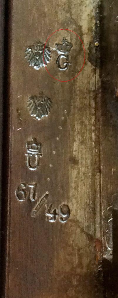 A falta de otras marcas sí sería importante identificar ese marcaje, igual puede determinar que el arma se fabricara antes de 1890 o posterior, lo que supongo que influirá a la hora de guiar el arma ...