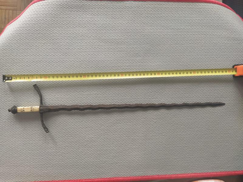 Pomo con perilla y cruz de gavilanes en forma de "S". Longitud total aprox. 58,5 cm