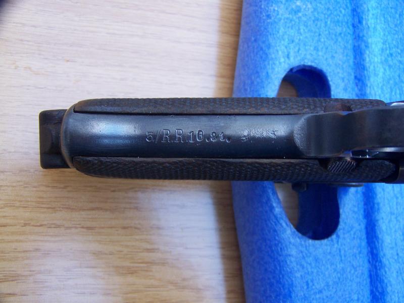 El doble marcaje que presenta el arma en la zona superior de la recamara obedece a una circunstancia no muy conocida fuera de los circulos más especializados en el coleccionismo. Se trata de que el Gobierno de la Republica de Weimar, que habia sucedido al Kaiser tras su abdicación, proclamó una nueva ley precisamente en ese año 1920 que proscribia la posesión de armas que ahbian sido militares por parte de los civiles (en su mayor parte soldados desmovilizados), estableciendo unas pequeñas recompensas en metalico por la entrega de dichas armas, las cuales debian de ser marcadas posteriormente con esa cifra (1920), para establecer que pertenecian al gobierno y de alguna manera prevenir su robo de los arsenales y posterior entrega para cobrar otra vez la recompensa.... (parece ser que la picaresca no es algo exclusivamente español