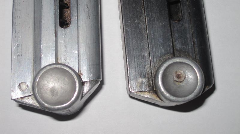 Y los cargadores son de 2 tipos : cromados hasta el final del bloque sufijo "l", y pavonados de ahí en adelante, pero las bases son de aluminio, y sin pasador.