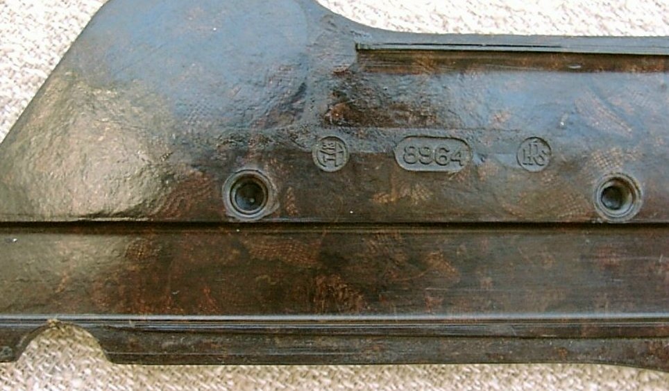 En cuanto al cargador, en primer lugar hay que asegurarse bien de que es un Erfurt. Te adjunto una imagen de un cargador original de Erfurt. Los Erfurt LLEVAN SIEMPRE 2 punzones de aceptación, que son unas letras góticas, uno por arriba del Nº de serie, y otro por abajo. En contraste con los de DWM, que tan solo a veces llevan 1 sello de aceptación, y en la mayoría de los casos, ninguno.
