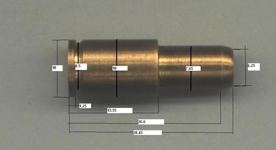 Mortadelo, el cartucho queda excentrico con el cañon del kit, los casquillos, que eran de aluminio, no pueden ser excentricos porque eso implicaria que siempre tendrian que alimentarse en la misma posicion.