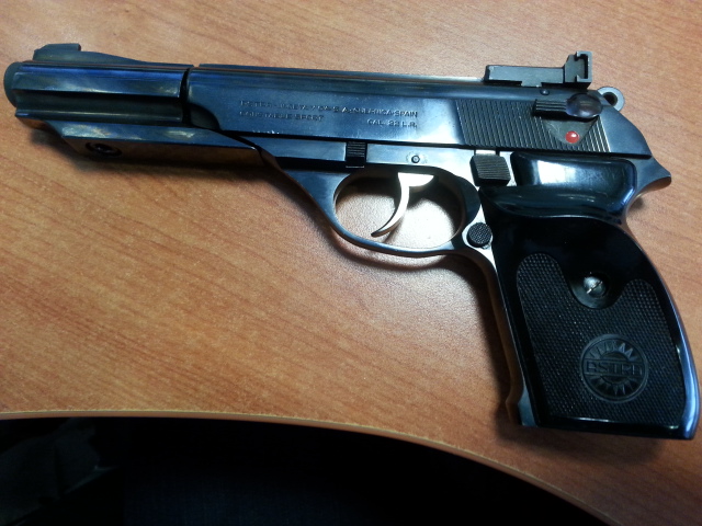 La pistola del 22 sport la que lleva el contrapeso tiene agrietada la cacha derecha aunque no se nota mucho.