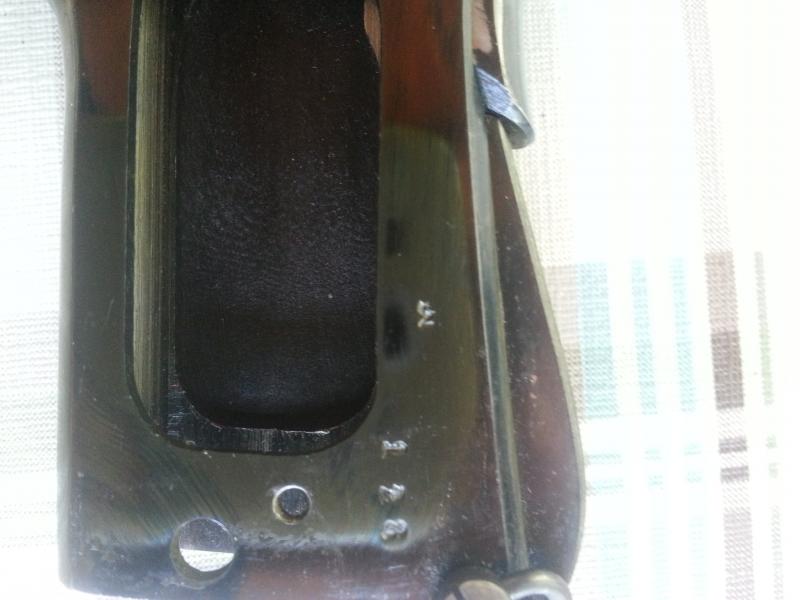 He mirado las fotos de la que has puesto y la hallada no tiene la marca de la P dentro de la bomba que esta en la parte posterior de la corredera encima del seguro ni las marcas que estan en el armazon delante de la palanca de retenida.