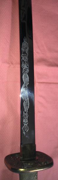 En mi opinión, por los dibujos de la hoja y la decoración de la katana y funda es de los chinos o parecida. Ornamental y eso según el gusto de cada cual, pero pieza de valor escaso o nulo.